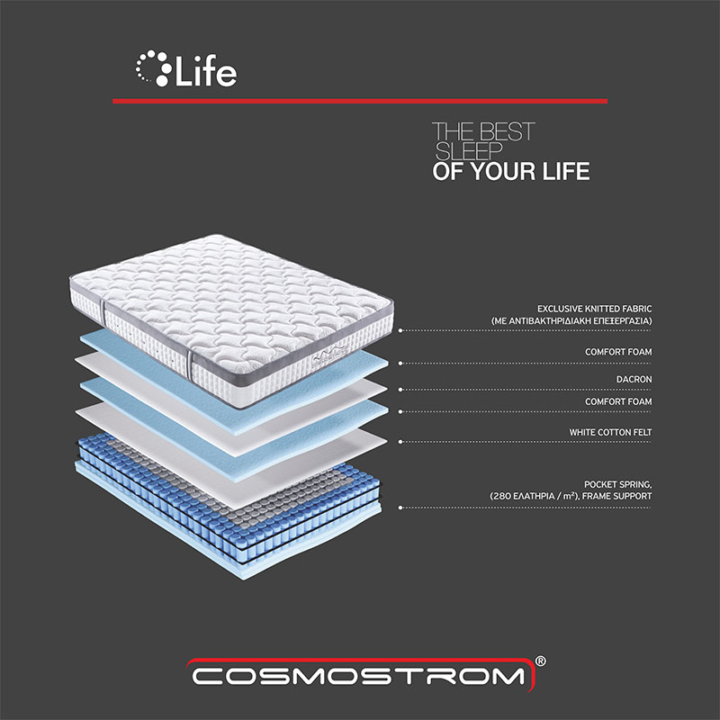 Το στρώμα που δημιουργεί μία νέα πραγματικότητα στην εμπειρία ύπνου. Τα ελατήρια pocket spring 280 τεμ / m2 και τα ποιοτικά αφρώδη υλικά δημιουργούν ένα απόλυτα χαλαρωτικό περιβάλλον ύπνου. Για να απολαμβάνετε έναν ξεκούραστο ύπνο, πλέον σε πιο προσιτή τιμή.